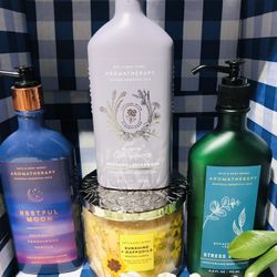 $40 Bath And Body Works Bundle 3 Bottles Of Aromatherapy Lotion And 1 Of 3wicks Candle Brand New And Pick Up Gahanna/ Cash Only.$40Gahanna, OH