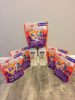 5tide Pods 16counts each bag 2All fabric softener 40loads 1Johnson wash 500ml 1Johnson baby lotion 300ml bundle for $30/ pick up Gahanna$30Gahanna, OH
