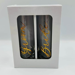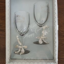 New Bride Groom Champagne Flutes Wedding Toast Glass Set Gold Script$15Columbus, OH