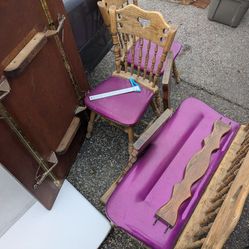 Wooden Table With Adjustable- Hinged Wings, Purple Vinyl Chairs, 1 Bench$500New Albany, OH