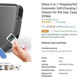 Dibea Robot Vacuum And mop$60Columbus, OH