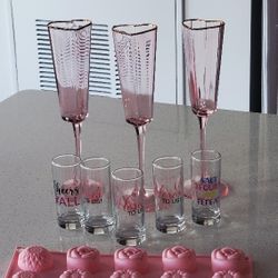 Pink Heart-shaped wineglasses + 6 Shot Glasses + Pink Flower Silicone Molds$50Upper Arlngtn, OH