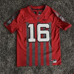 MENS NIKE OHIO STATE BUCKEYES 1916 THROWBACK FOOTBALL MUSIC & CANNON FIRE JERSEY$85Delaware, OH