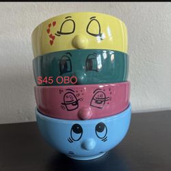 Vintage 4PC Livingware Collection Funny Smiley Face Ceramic Bowls with 3D Noses$30Columbus, OH