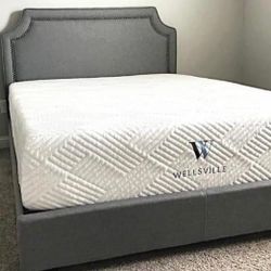 New Adorable QUEEN size grey linen bed frame with headboard $330 or $650 with memory foam hybrid mattress and box spring$330Upper Arlington, OH