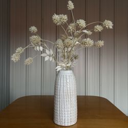Modern ceramic vase with distinctive pattern and a floral arrangement. Approximately 1’ high $20 or best offer. Pick up only. Dublin, Ohio $20Dublin, OH