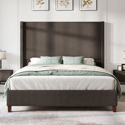 *Brand New* Wade Logan Wauseon Upholstered Wingback King Size Platform Bed, Brown$280Plain City, OH
