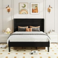 *Brand New* Queen Size Platform Bed Frame with Velvet Upholstered Wingback Headboard, Black$160Plain City, OH