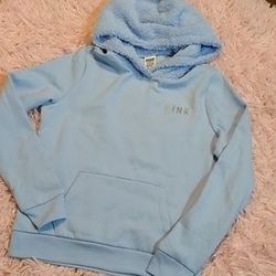 Light baby blue Sherpa fuzzy Hood hoodie vs pink