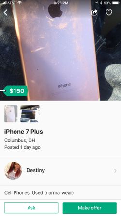 Unlocked iPhone 7+ 128GB$680Columbus, OH