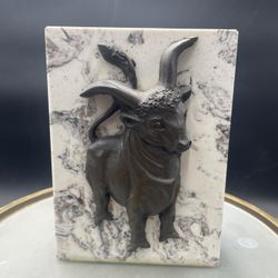 Vintage Marble Block Zodiac Taurus Bull Bookend Or Paperweight 6” By 4.5” VG $15Norwalk, OH