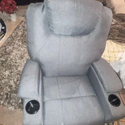 Blue/ Grey Material Electric Recliner With Console Cupholders LEDs And USB Plug Ins$1,049Dublin, OH