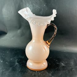Fenton Pink/Peach Cased 8.5" Pitcher Ruffled & Crimped Edge With Applied Handle $50Norman, OK