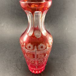 Gorgeous Vintage Cut To Clear Red Bohemian Glass Vase$35Norman, OK