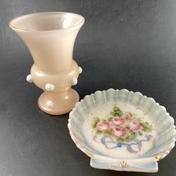 VTG Pink 1920s Like Fred Astaire Czech Signed Art Glass Vase & Hand painted Rose Clam Dish Lot$26Norman, OK