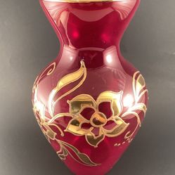 VTG Gorgeous Norleans Red Glass Vase With Gold Gilded Flowers & Trim—Made in Italy—stamp on bottom$45Norman, OK