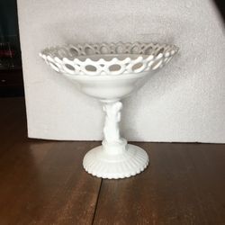 Vintage Indiana Glass Lotus Blossom Milk Glass Pedestal Compote Bowl $21Norman, OK
