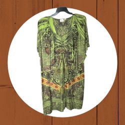 Cato Green, Black, Rust, Gold Midi Dress w Riveted Gems Neck/Sleeves Women ~2X$20Choctaw, OK