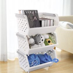 3-Pack White Stackable Baskets, Stacking Storage Organizer Bins$5Washington, OK