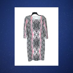 Bisou Bisou Pink, Black, White Geometric Print Lined 3/4 Sleeve Dress Women Sz 12$25Choctaw, OK