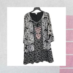 Cato Est. 1946 Black White Pink Geometric Leaves Pattern Lined Dress Women XL$28Choctaw, OK