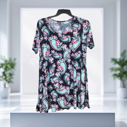 Unbranded Navy Dress w Turquoise & Pink Paisleys & Flowers Dress Women ~2X$25Choctaw, OK