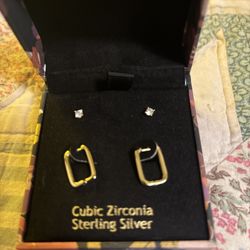 Rachel Ashwell Gold Color Plate Sterling Silver Cubic Zirconia Earrings Set$15Oklahoma City, OK