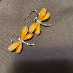 DRAGONFLY Yellow Faceted Acrylic Wings Silver Tone Rhinestone Dangle Earrings$25Oklahoma City, OK