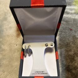 Gift Boxed 2pc Sterling Silver 1/10ct Diamond Earrings Hoop And Stud Retail $124$45Oklahoma City, OK