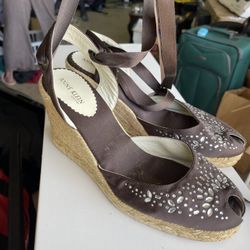 Anne Klein New York brown satin espadrille wedges, size 9.$10Norman, OK