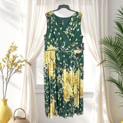 Alexa B Nites New w Tag Green & Yellow Floral Sleeveless Lined Maxi Dress w Bling Gem Band Women 20W$45Choctaw, OK