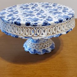 Stunning Blue Rose Gold Trimmed Pedestal Cake Stand. $75Cranston, RI