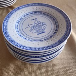 7 Vintage Jingdezhen China Porcelain Rice Eye Blue/White Dessert Plates$50Providence, RI