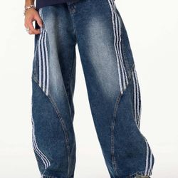 DENIM CONTRAST STRIPED STITCHING BARREL JEANS - 2504$60Central Falls, RI