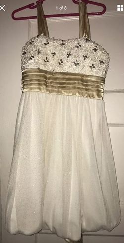 NWT Girls Off White Gold Dress Sequins, Bow, Sparkle Skirt Zip Ties Back Size 7$30Cranston, RI