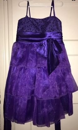 NWT Girls Purple Dress Sequins, Bow, Layers Of Organza Zips Ties Back Size 9-10$30Cranston, RI