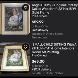 Angel Kitty VINTAGE USA Gold Foil Frame USA 22"H x 18"W $25Lincoln, RI