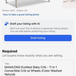 MAMAZING EvoNest Baby Crib - 11 in 1 Convertible Crib w/ Wheels (Color-Washed Natural)$285Pawtucket, RI