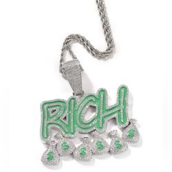 Silver Plated Glows In Dark RICH Money Bag $ Pendant and 24INCH Rope Chain CZ$160Providence, RI