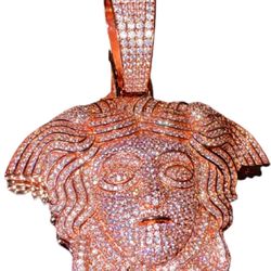 Mens Cz Diamond π Ice Out Famous Medusa 14K Rose Gold Plated Big Charm Pendant For Upto 20MM Cuban Chain$300North Providence, RI