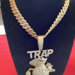 Mens 5A CZ Diamond π Ice Out Famous Trap Money Bag Big Charm Pendant 20MM Cuban Chain$600Providence, RI