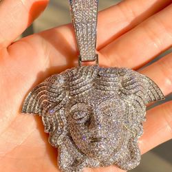 Mens Cz Diamond π Ice Out Famous Medusa 14K White Gold Plated Big Charm Pendant For Upto 20MM Cuban Chain Β $300Providence, RI