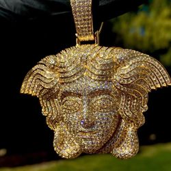 Mens Cz Diamond π Ice Out Famous Medusa 14K Gold Plated Big Charm Pendant For Upto 20MM Cuban Chain Β $300Providence, RI