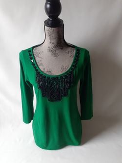 Dana Buchman women's green black embellished long sleeve top size XS$18Fall River, MA