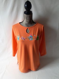 Quacker Factory women's Orange embroidered top size S$19Fall River, MA