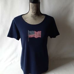 Karen Scott women's navy blue short sleeve USA flag top size M $18Fall River, MA