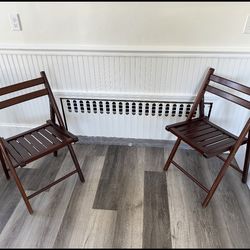 Linon Triena folding chairs featuring a rich wood finish and dark brown faux leather padding on the seat and back. $110North Attleborough, MA
