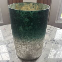 Tall Green Silver Mercury Glass Vase Hurricane Candle Holder 9β$18East Greenwich, RI