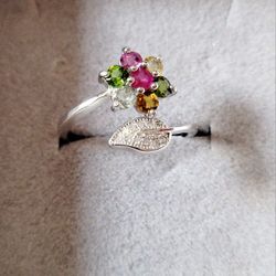 Women Ring Sz 7 Flower 925 Silver Ring, Adjustable, Wraps Finger. Multicolor$18North Providence, RI