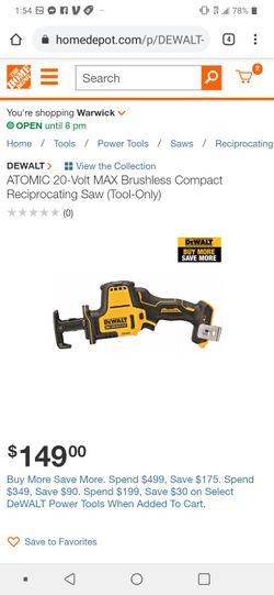 ATOMIC 20-Volt MAX Brushless Compact Reciprocating Saw (Tool-Only)$110Warwick, RI